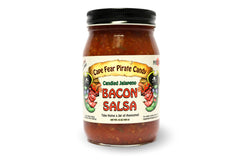 The name says it all; Candied Jalapeno Bacon Salsa! Cape Fear Candy from Wilmington, NC uses a secret family recipe to produce their version of salsa with their legendary candied jalapenos and the flavor of bacon. A bold taste with medium heat for this salsa. A 16 oz jar.